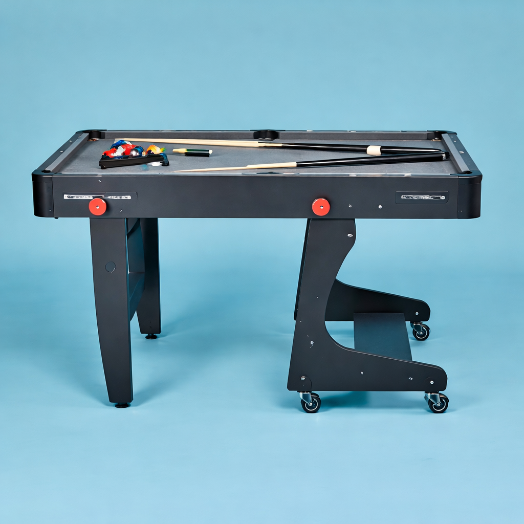 - Accessoires inclus : Queues de billard, boules, triangle et craies.